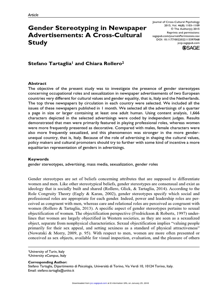 Journal of Cross Cultural Psychology 2015 Tartaglia 1103 9 Gender
