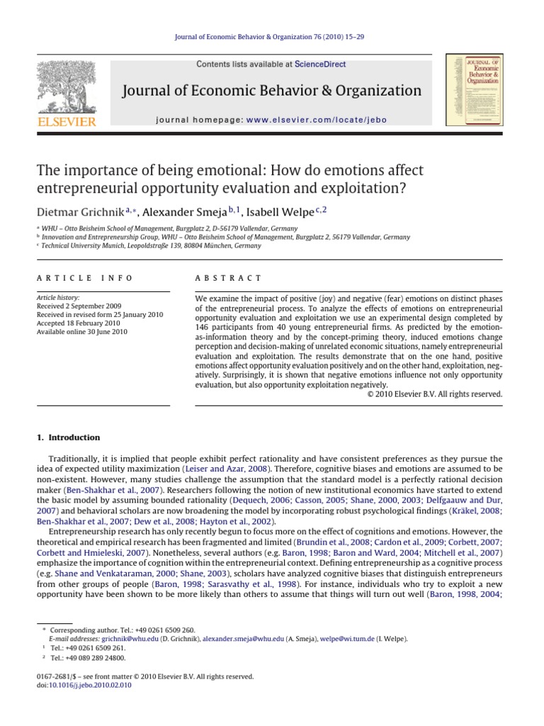 Journal of Economic Behavior & Organization PDF Entrepreneurship
