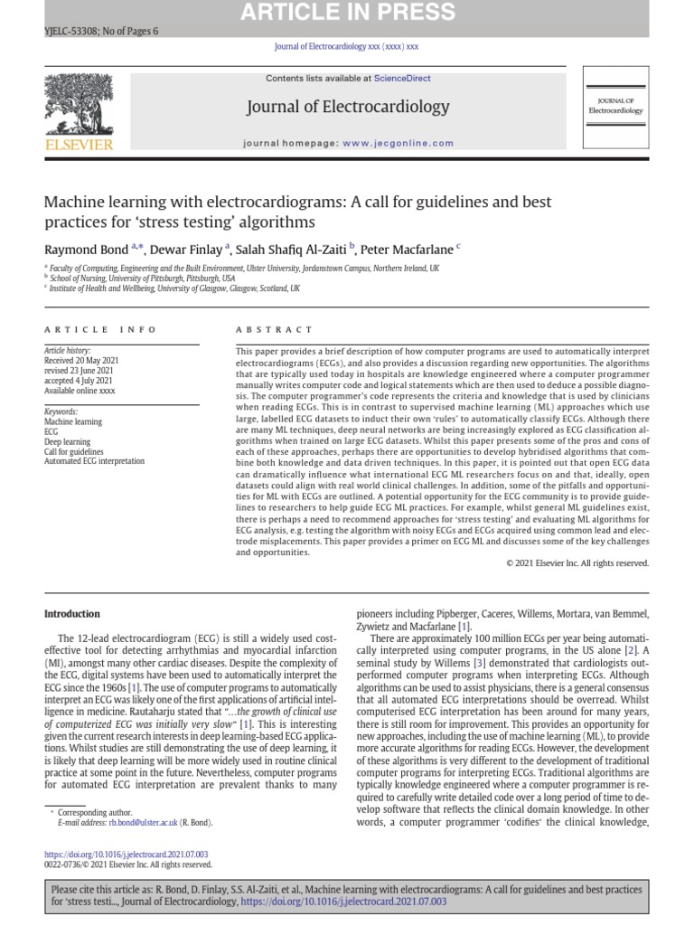 Journal of Electrocardiology Raymond Bond Dewar Finlay, Salah Sha Fiq