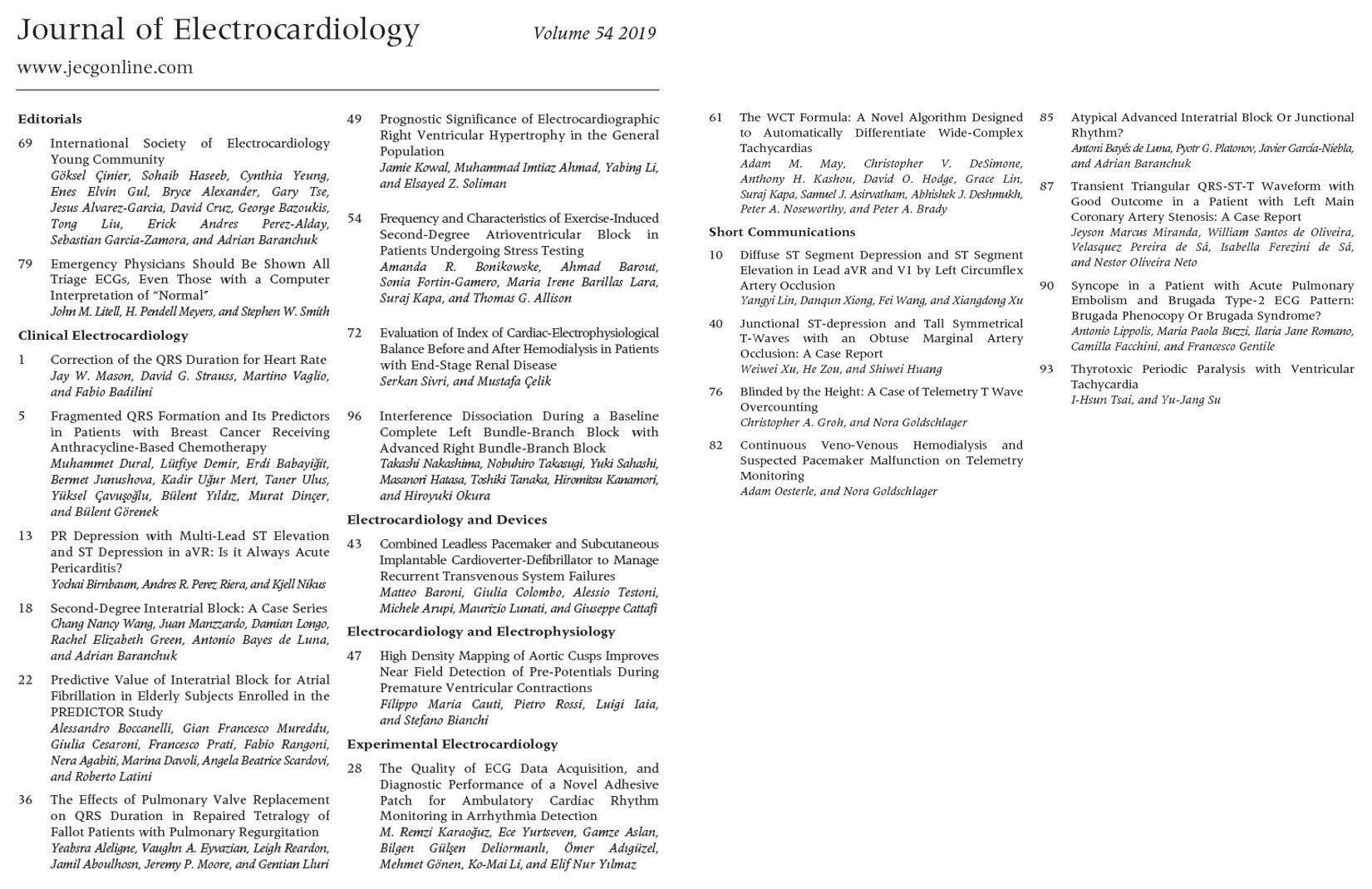 Journal of Electrocardiology on Twitter "Volume 54, MayJune 2019