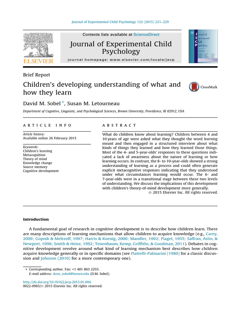 Journal of experimental child psychology. It also features special issues and articles on topics such as honesty, oral. Web journal of experimental child psychology. According to the journal citation reports, the journal has a 2017 impact factor of 2.424.