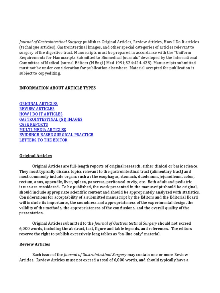 Journal of Gastrointestinal Surgery Instructions For Authors PDF