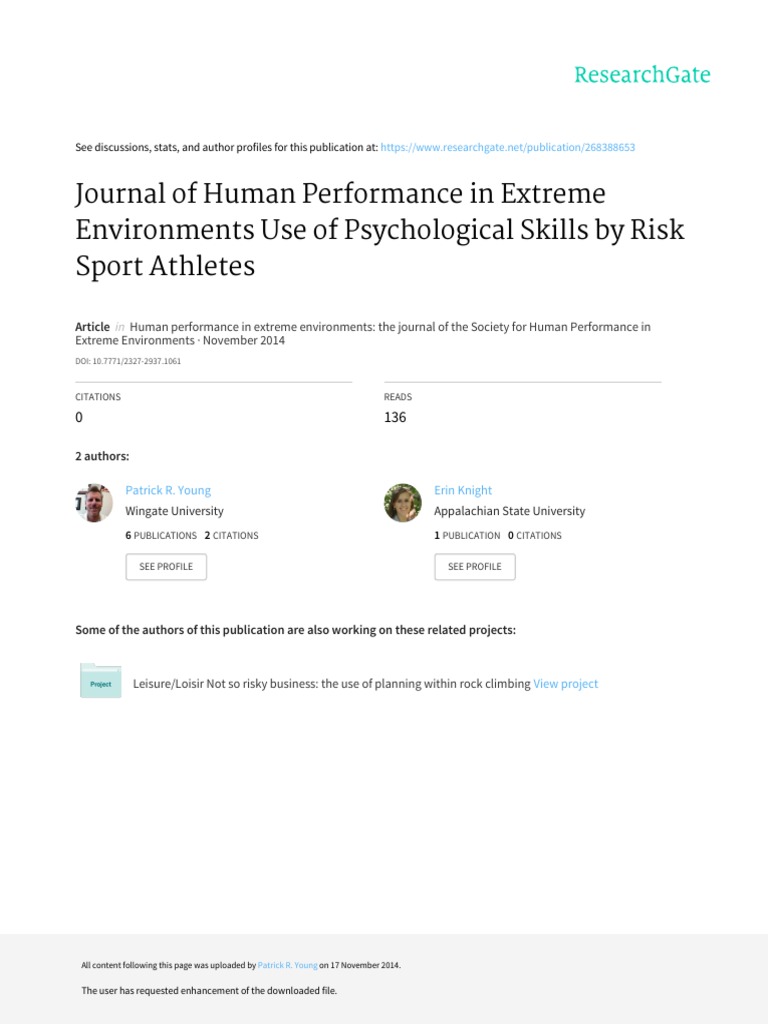 Use of Psychological Skills by Risk Sport Athletes Journal of Human