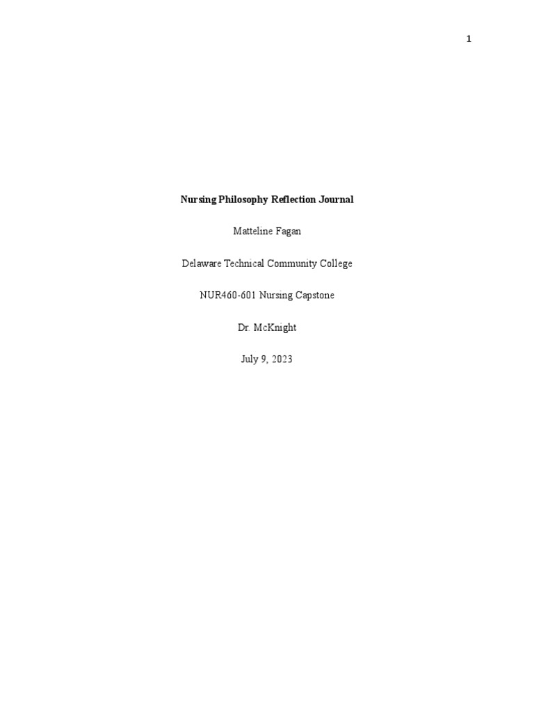 Nursing Philosophy Relfection Journal PDF Nursing Patient