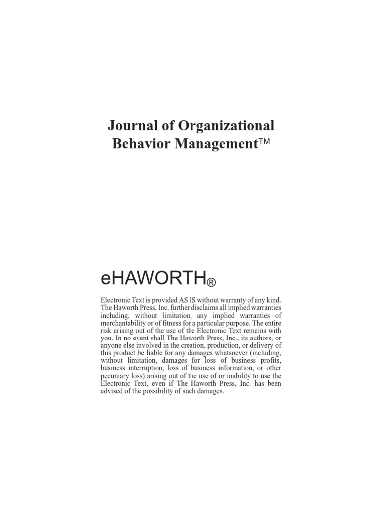 Wide disseminationwidely indexedhighly cited journalopen access advantage Web the journal of organizational behavior publishes empirical reports and theoretical reviews of research in the field of.