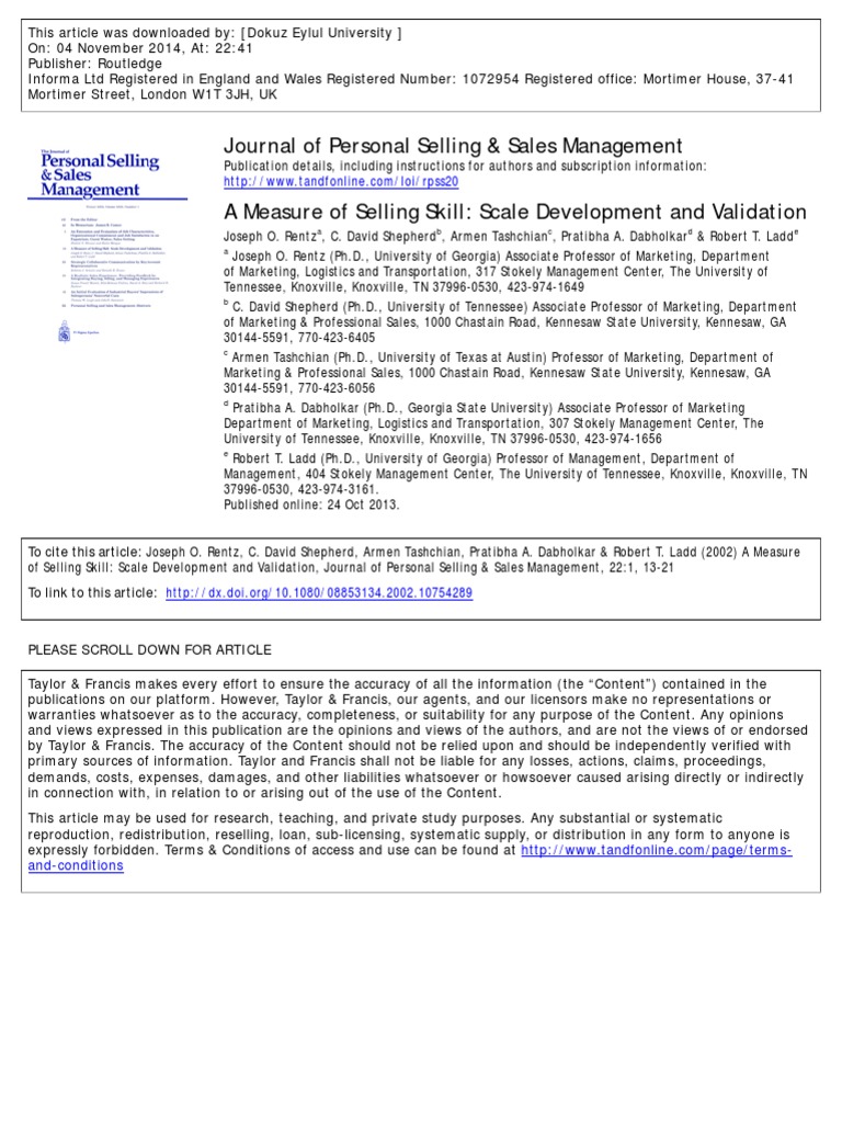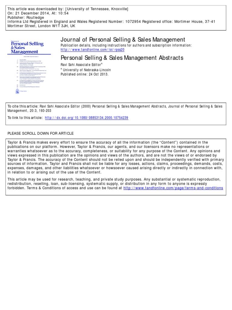 Journal of Personal Selling & Sales Management PDF Sales Customer