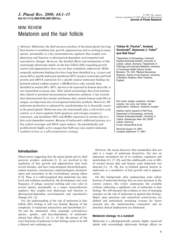 Journal of pineal research features studies on melatonin, including topics such as melatonin receptor. Defining and characterizing melatonin targets. Experimental studies on circadian rhythms and.