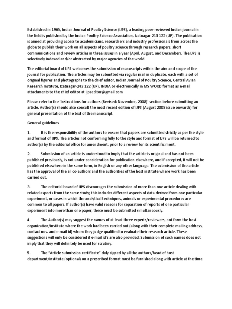 Indian Journal of Poultry Science Abstract (Summary) Academic