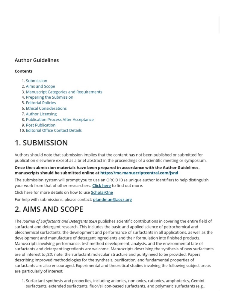 Journal of Surfactants and Detergents Referencing Guide · Journal of