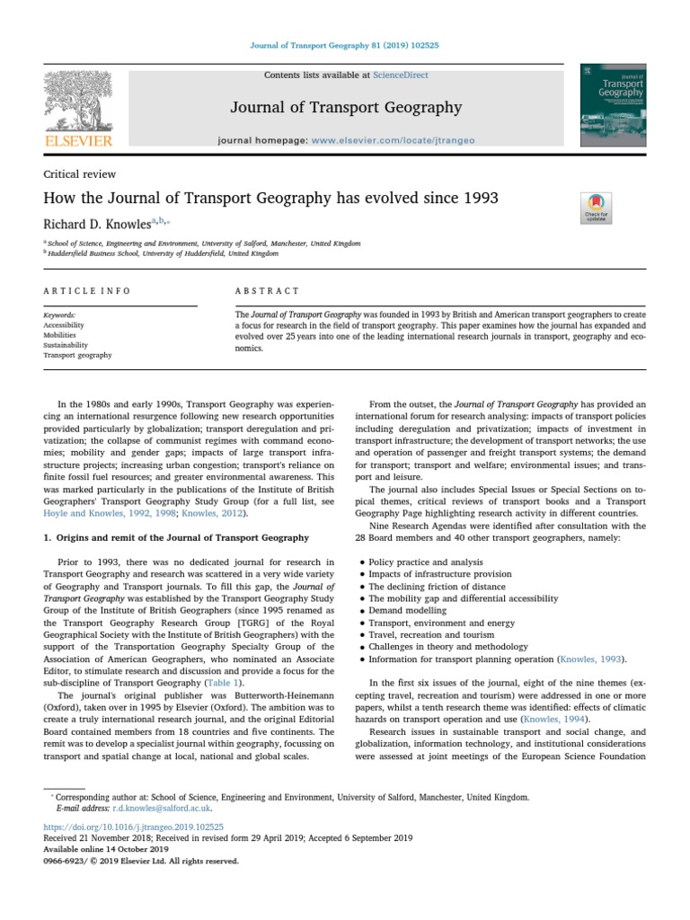 Journal Of Transport Geography - A major resurgence has occurred in transport geography in the wake of political and policy changes, huge transport infrastructure projects. Web the journal of transport geography is a leading interdisciplinary journal focusing on the geographical dimensions of transport, travel and mobility. Web the journal focuses on transportation geography research, methodologies, and data; This first of three reports confirms and extends recent reflections on the diversity and vibrancy of the study of transport in geography. The relationships between transport and spatial planning; Covering associated investigations within government policies, infrastructure, area development, telecommunications, economic integration (global and regional), environment, energy resources, travel, tourism, geographical information systems, and spatial change. Web the journal of transport geography is a leading interdisciplinary journal focusing on the geographical dimensions of transport, travel and mobility. Web in this context, this chapter considers advances, opportunities, and, sometimes, risks and disappointments induced by the following topics to transport geography: Web the journal of transport geography is a leading interdisciplinary journal focusing on the geographical dimensions of transport, travel and mobility.