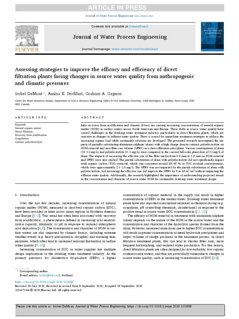 Journal of Water Process Engineering Isobel Demont, Amina K. Stoddart