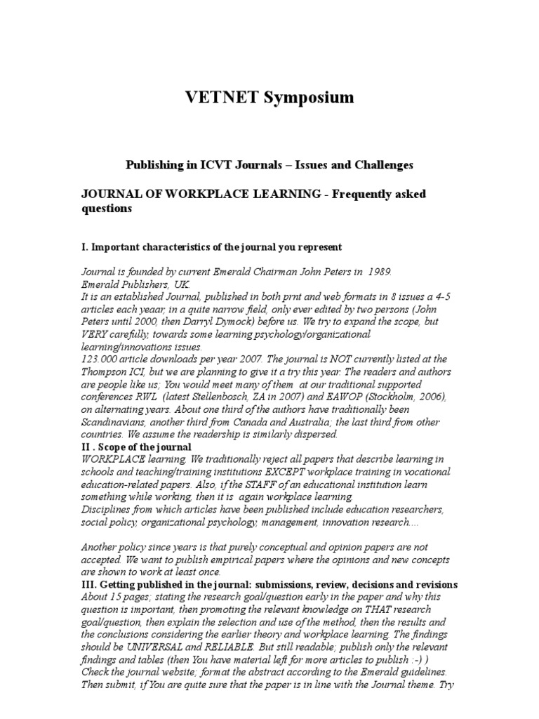 Web journal of workplace learning: Web journal of workplace learning. This study aims to analyze the journal of workplace learning (jwl), focusing on articles between.