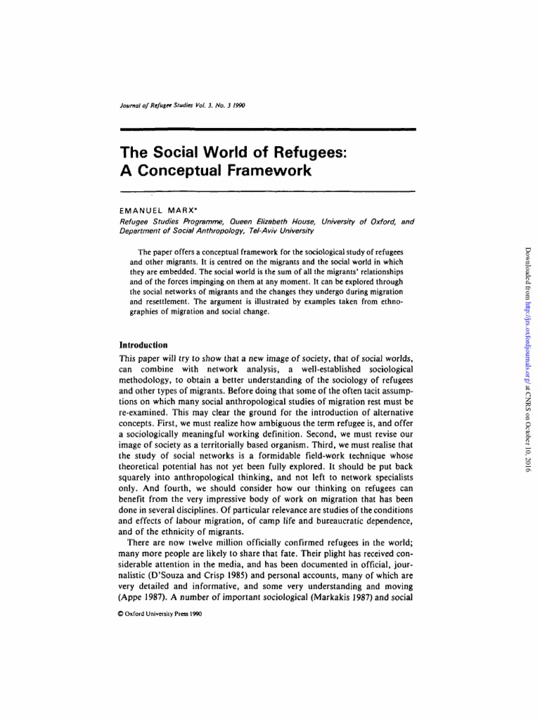 Journal of Refugee Studies 1990 MARX 189 203 Refugee Sociology