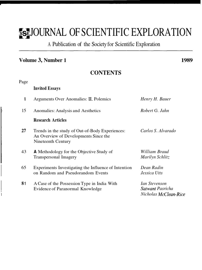 Journal of Scientific Exploration (OBE) Science Copyright