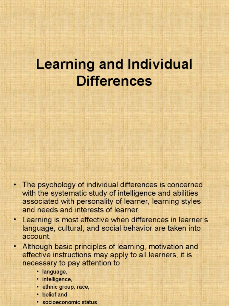 Individual differences Learners may have different…