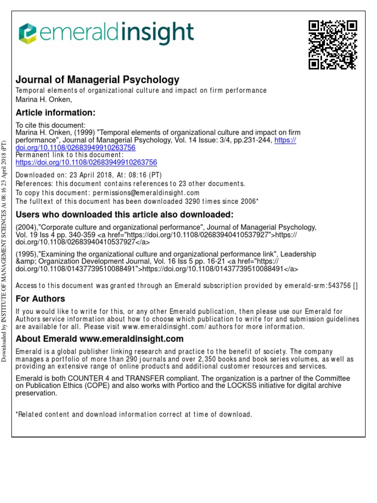 Journal Of Managerial Psychology Is Organized To Address Concerns In The Fields Of Social.