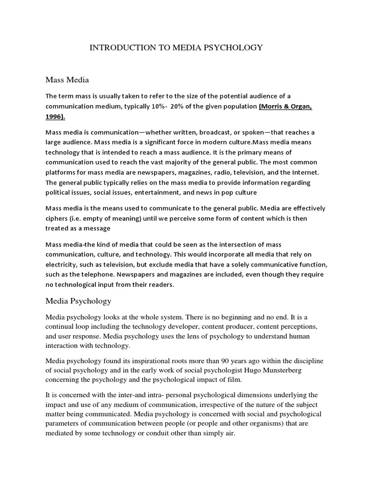 Introduction To Media Psychology Docx Prac PDF Mass Media