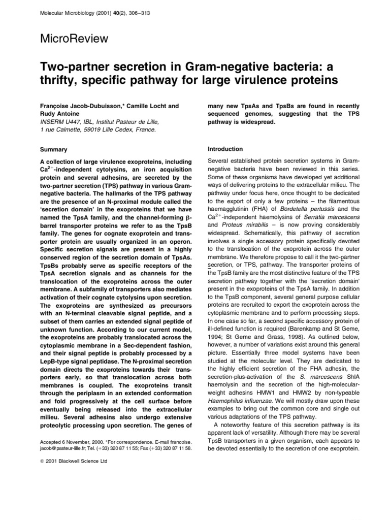 Antoine Mol Microbiol 2001 PDF Secretion Protein Targeting