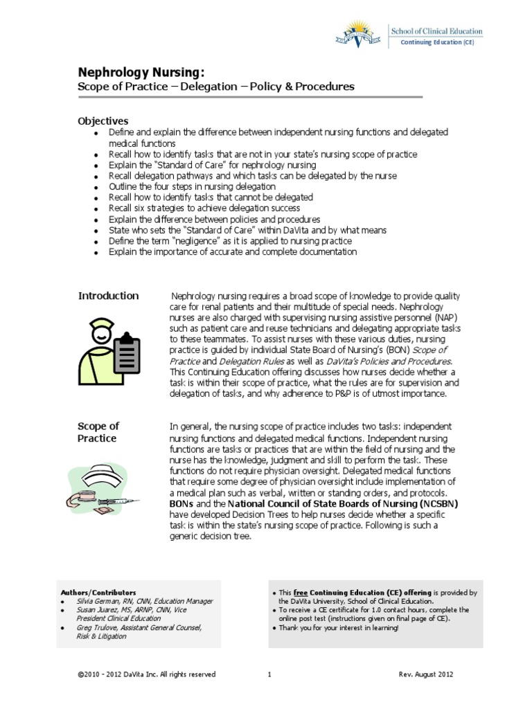 Web the eighth edition of the nephrology nursing scope and standards of practice, published by the american nephrology nurses association (gomez, 2017), defines the scope.