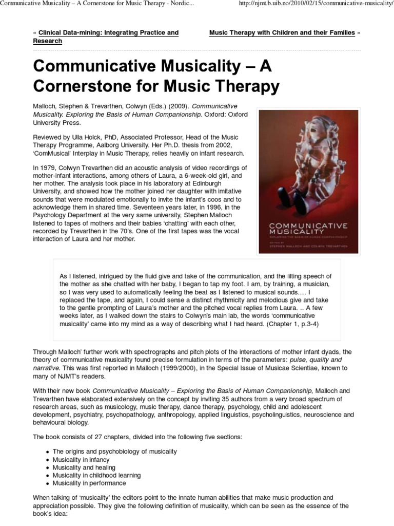 Communicative Musicality A Cornerstone For Music Therapy Nordic