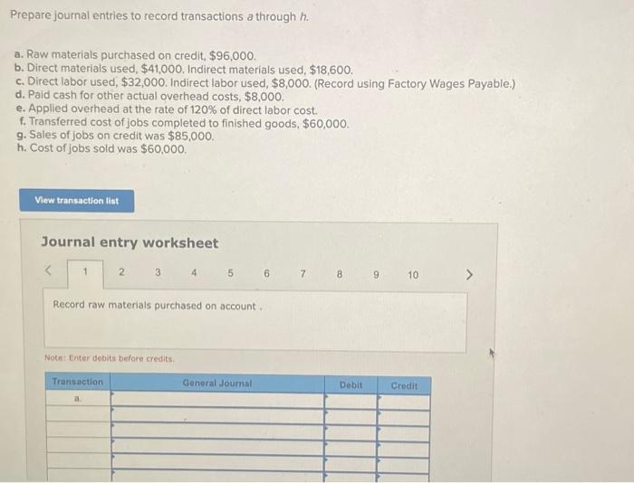 Post the relevant transactions from. When each job and job order cost sheet have been completed, an entry is made to transfer the total cost from. Web to record the transactions a through h provided by the student, the following journal entries are made: Prepare journal entries to record transactions a through h.