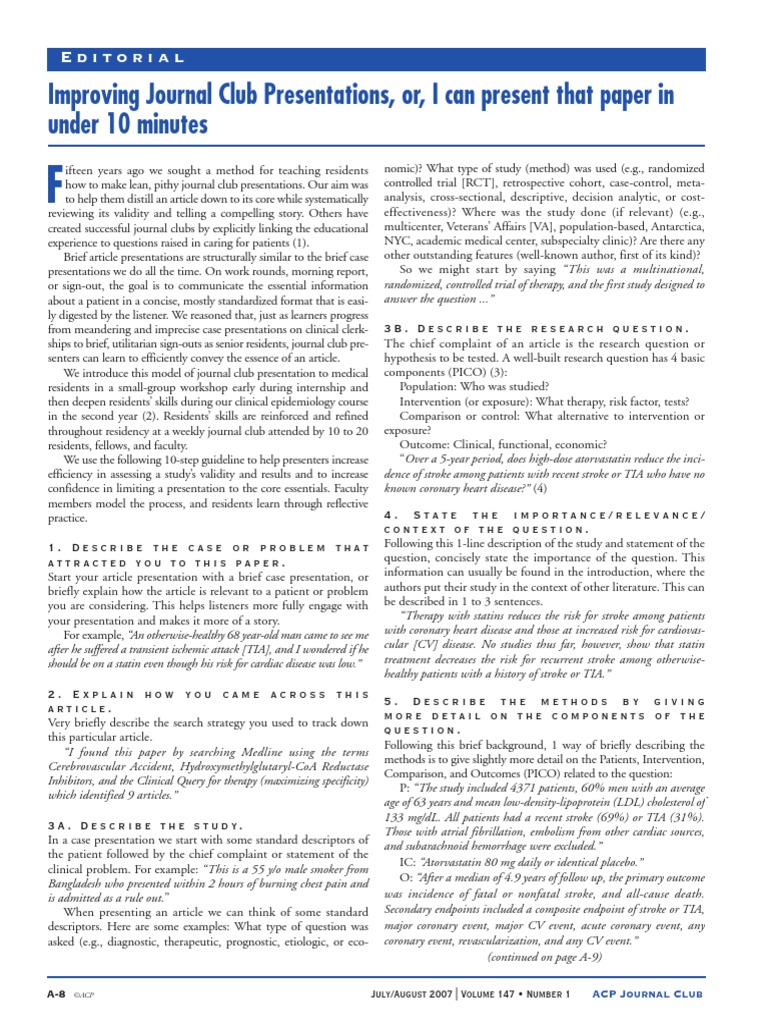 Prepare beforehand for your journal club presentation by knowing the research that has preceded and is related to the paper you. Published in annals of emergency medicine 1 august 2004. Web keeping in mind the goals of journal club at your institution will guide the emphasis of your presentation. Web presenting at journal club: