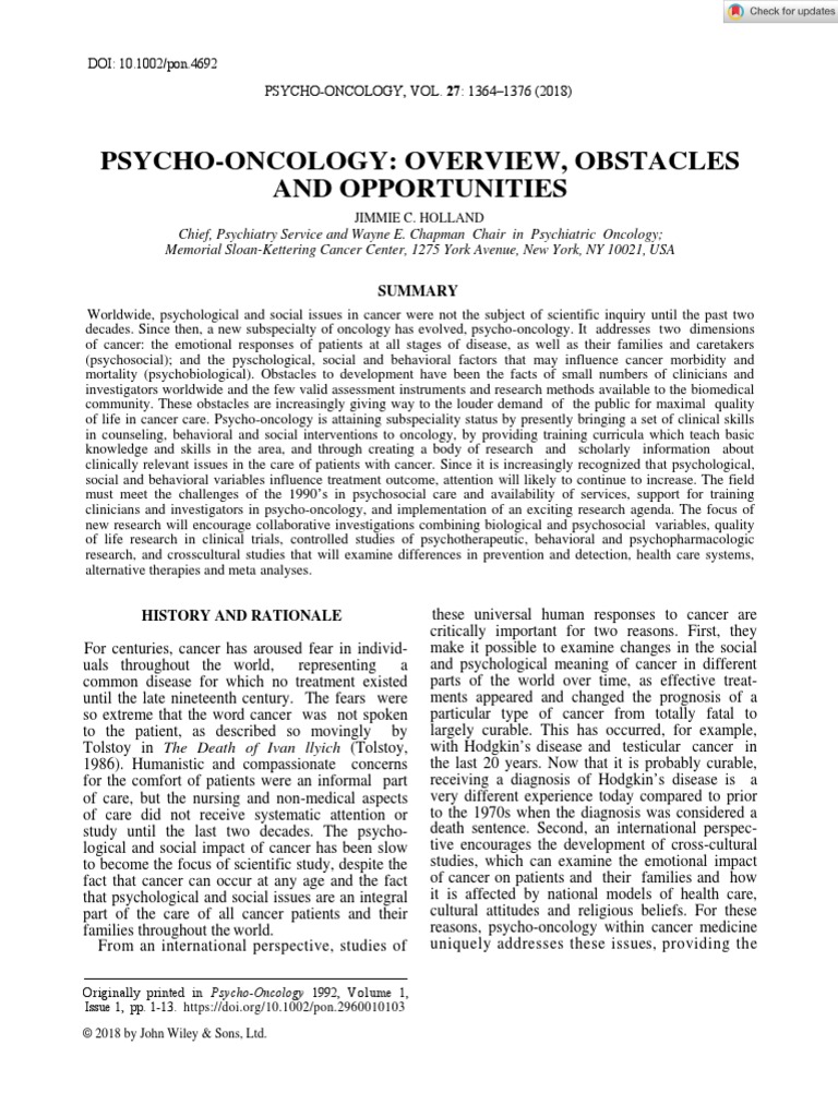 PsychoOncology 2018 Holland Psycho Oncology Overview Obstacles
