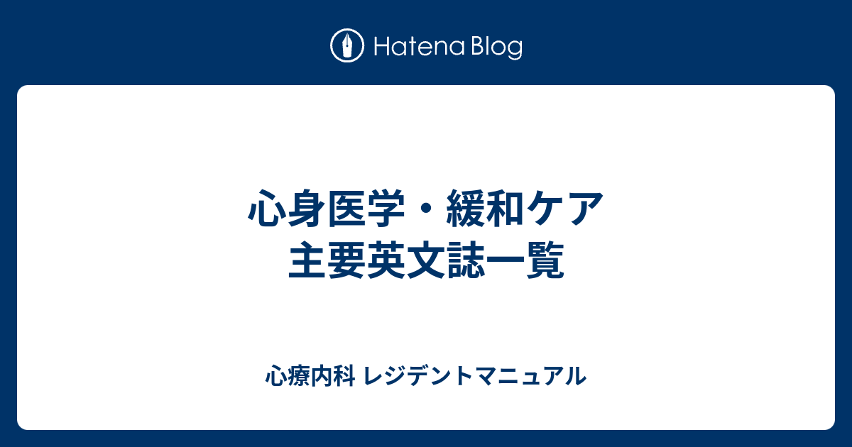 心身医学・緩和ケア 主要英文誌一覧 心療内科 レジデントマニュアル