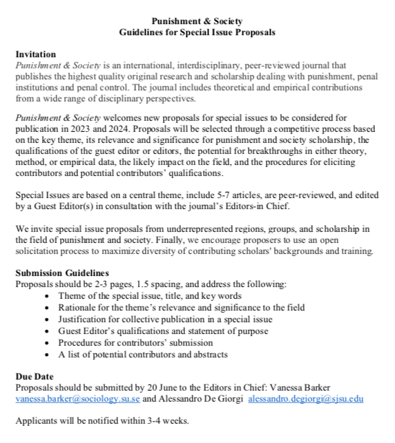 Punishment and Society on Twitter "Call for Special Issue Proposals