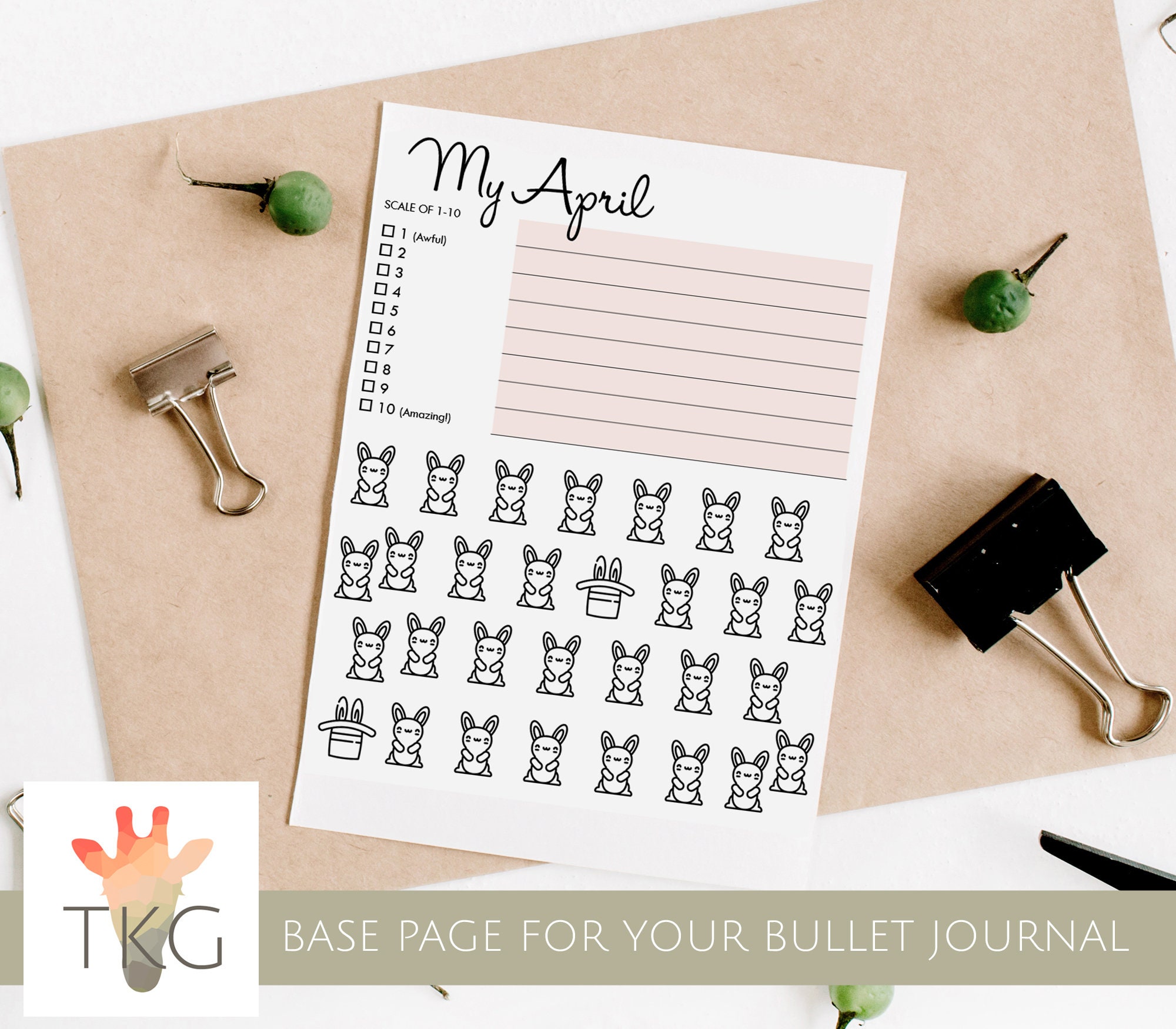 April 2021 Bunnies Rate My Day Bullet Journal Mood Tracker Etsy