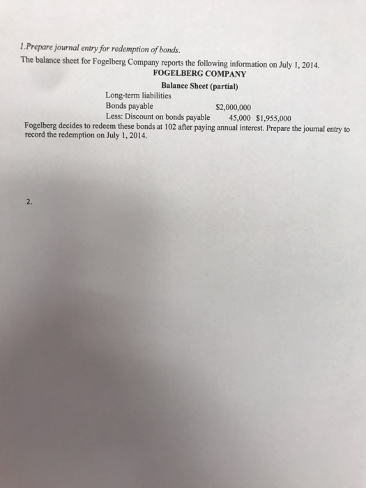 Solved Prepare journal entry for redemption of bonds. The