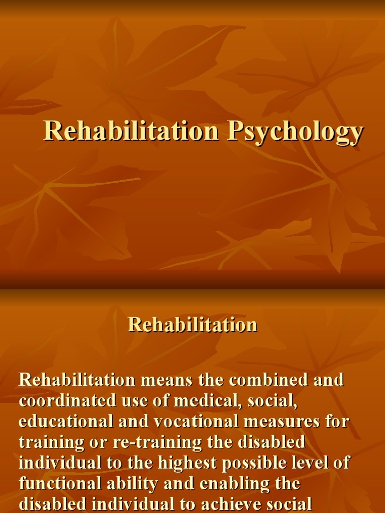 Jae hyu jung, jong jin won, jin young ko. Web the definition of rehabilitation psychology, by contrast to the medical model, includes a philosophy of assessing and treating difficulties that disabled people experience with an overt emphasis on the barriers to their full participation in life rather than on erasing Web “rehabilitation psychology is a specialty area within psychology that focuses on the study and application of psychological knowledge and skills on behalf of individuals with disabilities and chronic health conditions in order to maximize health and welfare, independence and choice, functional abilities, and social role participation across. As an academic discipline, rehabilitation psychology began in the 1950s and 1960s when federal support.