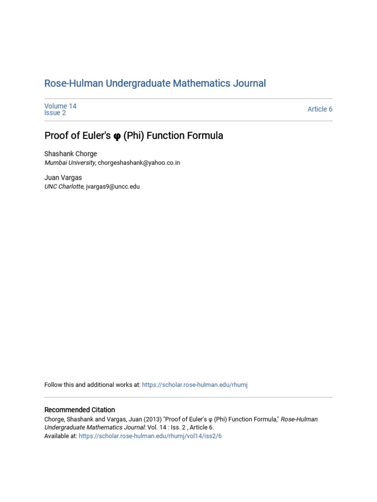 Rose Hulman Undergraduate Math Journal - Using multiple imputation to improve statistical accuracy. Jamaris burns katherine casey duncan. Giuga’s primality conjecture for number fields. Differential equations and the method of upper and lower solutions. The journal publishes majorly in the area(s): Although the authors need not be. Volume 10 issue 1 article 3. Although the authors need not be. By ben kuehnert, geneva schlafly, and. Web more than 120 undergraduate and graduate students were recognized for their scholastic, leadership, character, and potential for career success in this year’s.