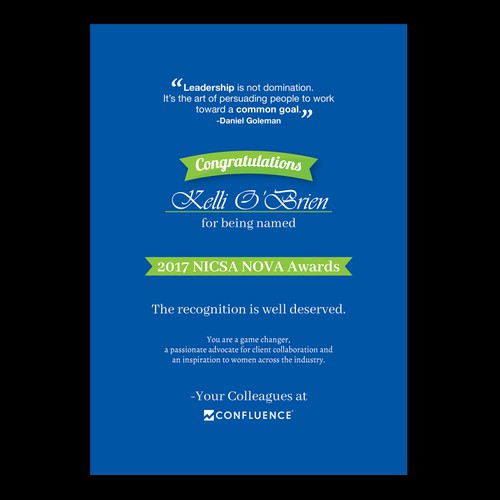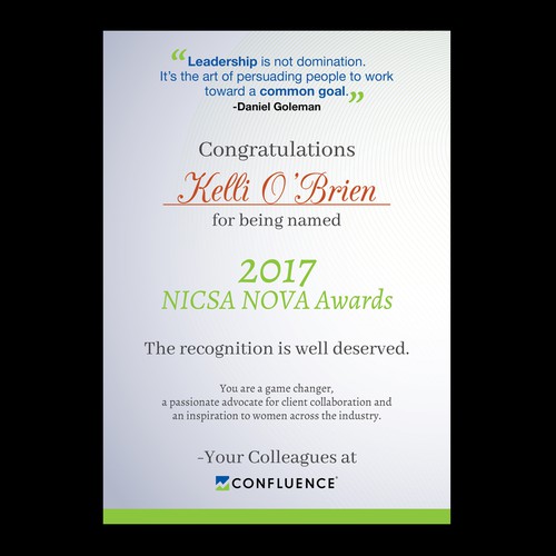 The visual for the ad. [honorees' names here] congratulations on being chosen. Our client was given an award and we want to include an ad in the publication to congratulate her. Learn how to express your admiration and.