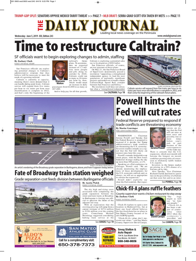 San Mateo Daily Journal 060419 Edition Caltrain Federal Reserve