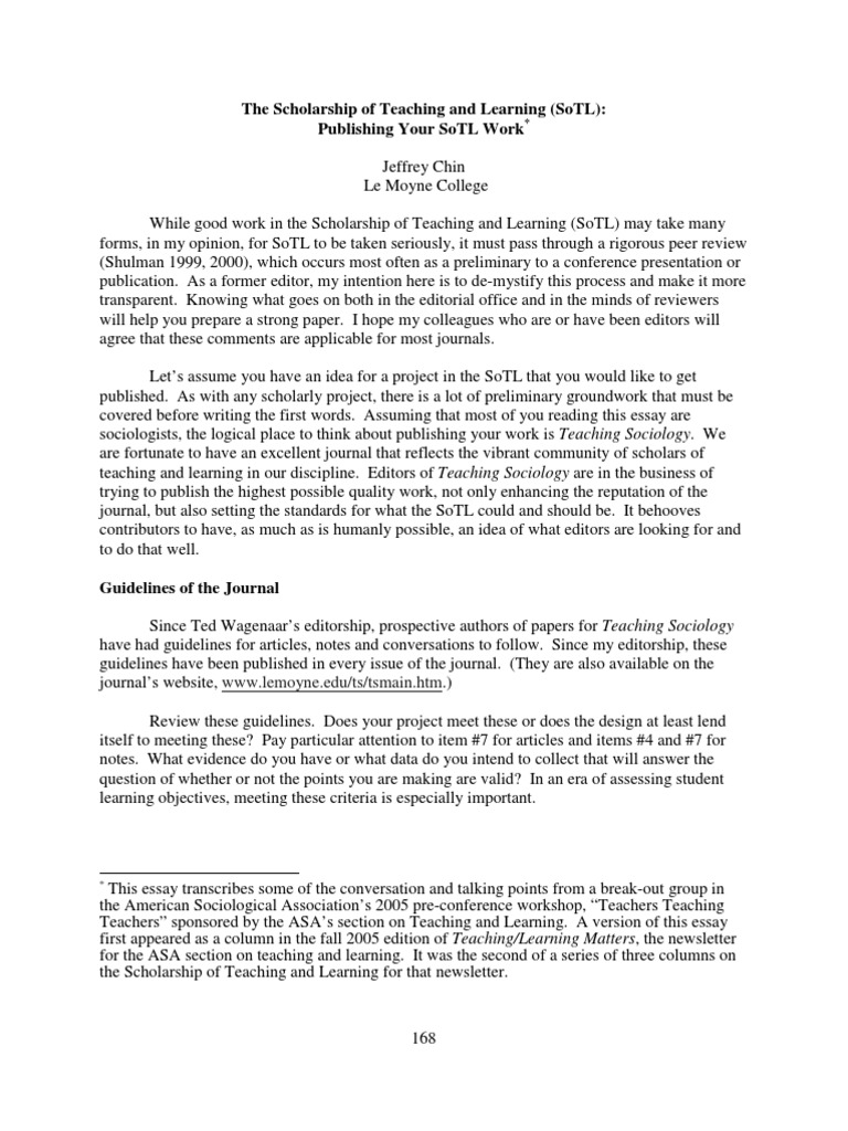Publishing in SOTL Journals PDF Course Evaluation Sociology