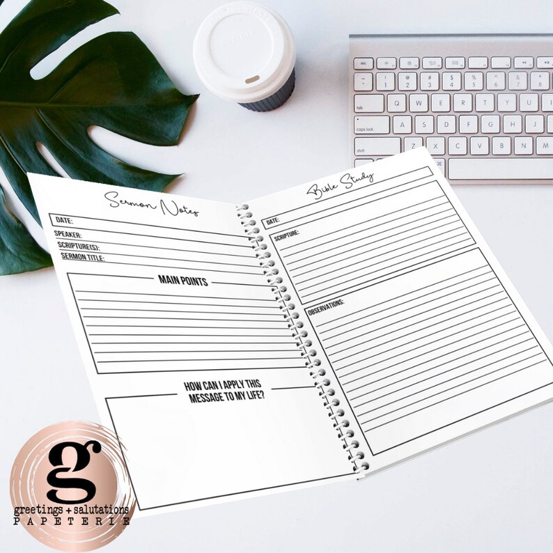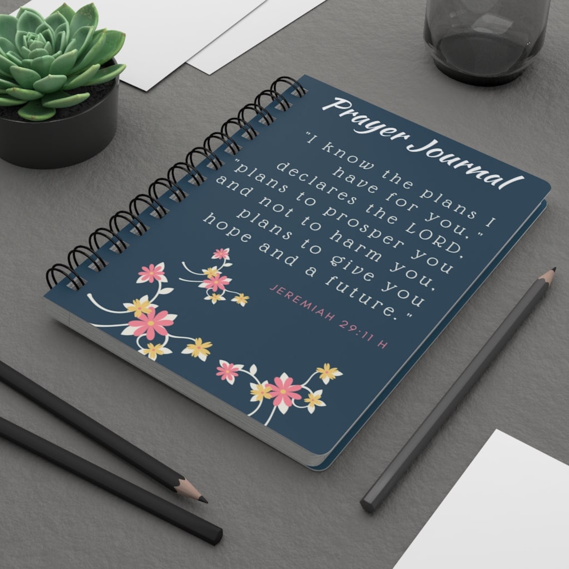 Prayer, devotional journal, 8x5 handheld spiral bound, 75 page planner, 3 page options, 7 cover options. It's meticulously designed to guide you through. 6×9, 8×10.