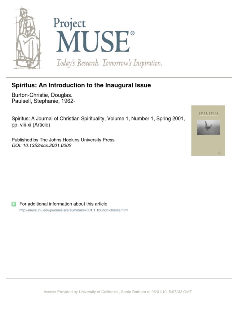 Spiritus Journal Introduction to Christian Spirituality PDF