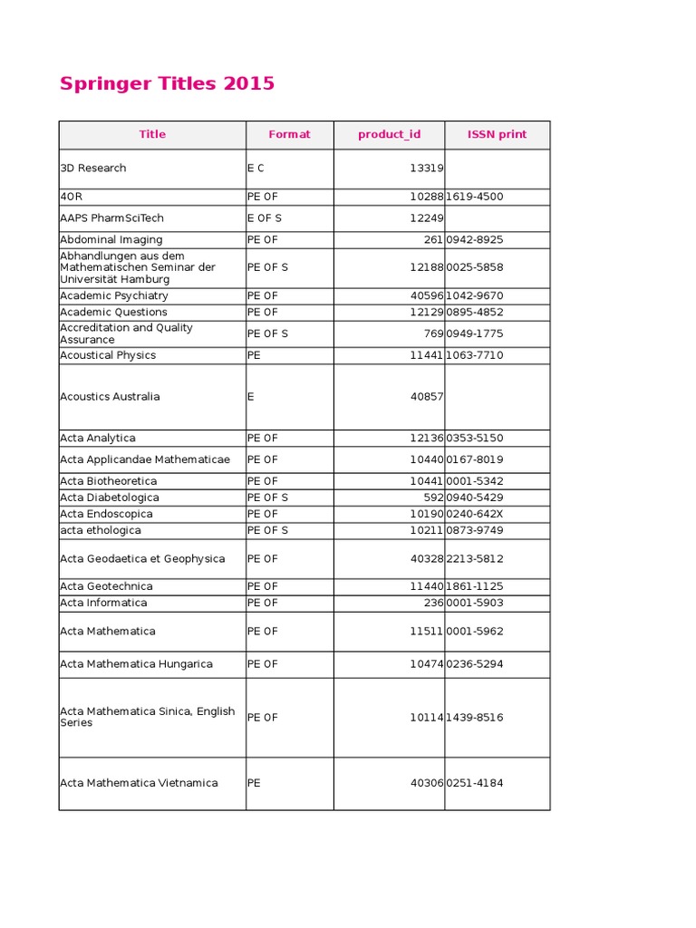 Web Below You Can Find Lists Of All Springer Nature Journals, Including Open Access Titles.