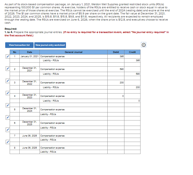 There are three transactions related to the stock compensation. Senior engineers earn 10.8% more. We will not recognize the expense yet. Restricted stock and stock.
