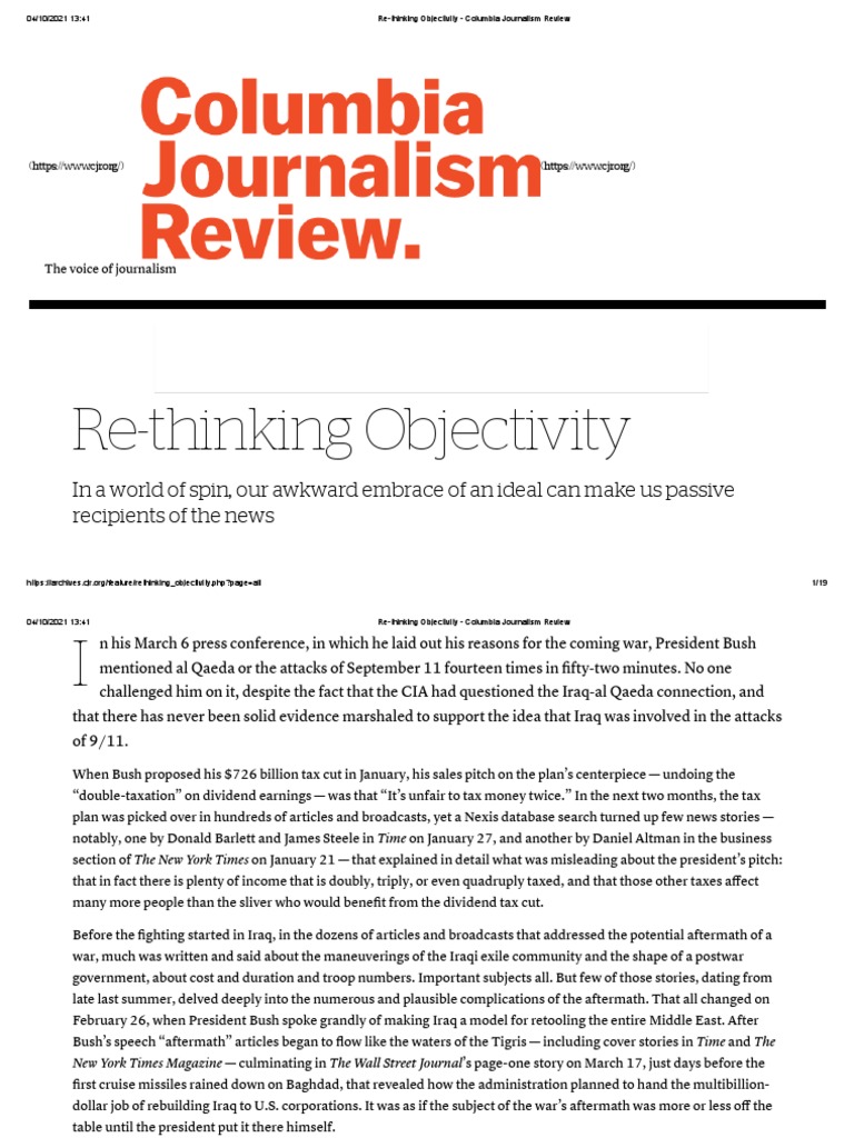 ReThinking Objectivity Columbia Journalism Review PDF Journalism