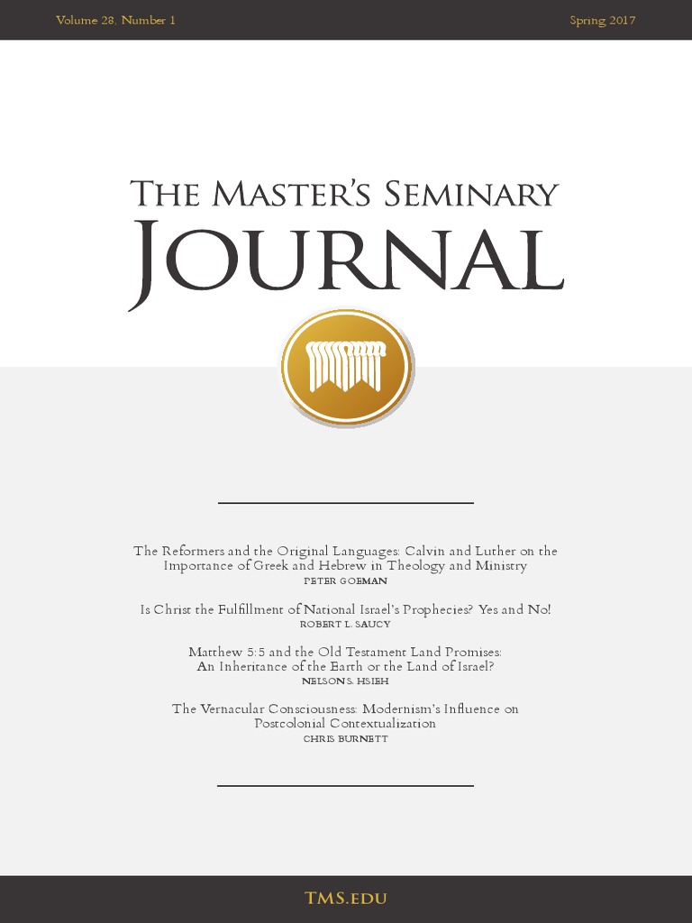 Search for a tmsj article in the master’s seminary’s library catalog using the instructions below. Web series the master's seminary journal. This issue of the.