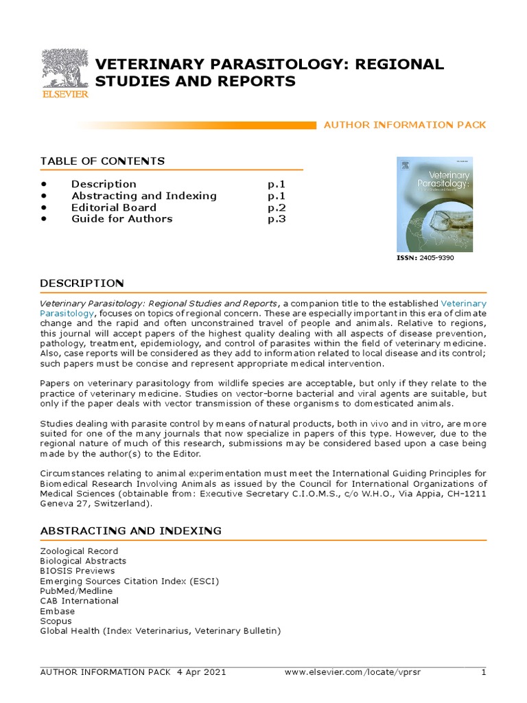 Veterinary Parasitology Regional Studies and Reports PDF Academic