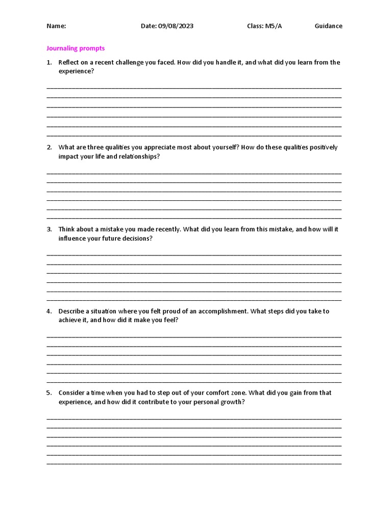 Journaling Prompts PDF Experience Thought