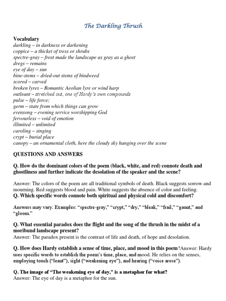 The Darkling Thrush Poem Summary and Analysis LitCharts