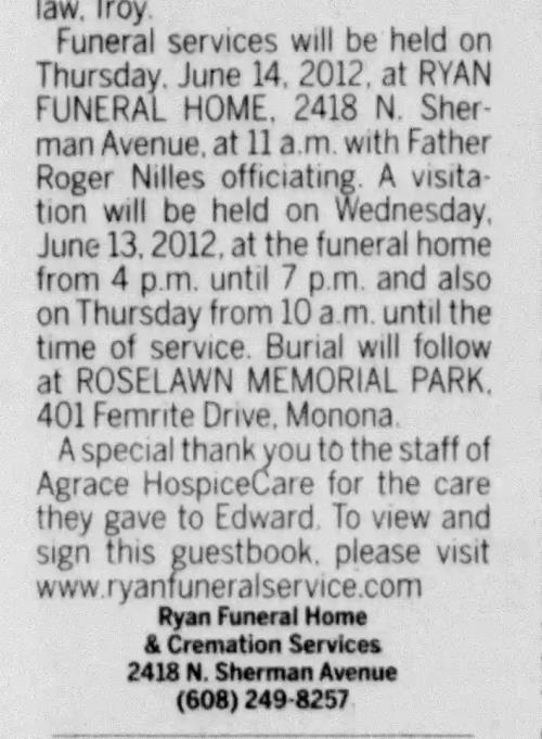 *holidays may effect these deadlines. Obituaries may be submitted for publication two different ways. She was born july 31, 1923, in eau claire, wi to joseph. Genealogy and family history records include: