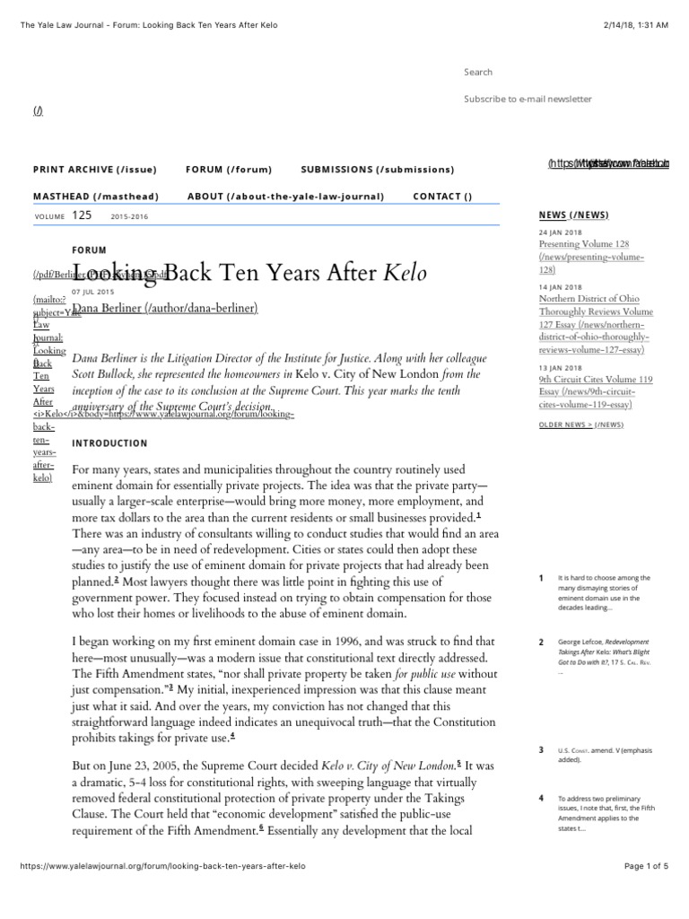 The Yale Law Journal Forum Looking Back Ten Years After Kelo PDF